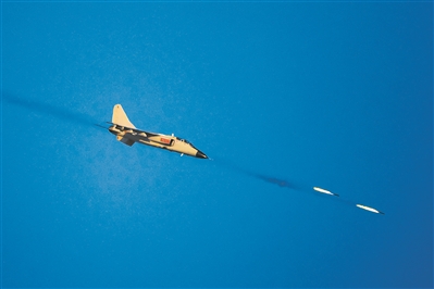圖①:北部戰(zhàn)區(qū)海軍航空兵某旅組織戰(zhàn)術射擊訓練,檢驗飛行員低空機動突防能力。圖為戰(zhàn)機俯沖向目標發(fā)射火箭彈。張越 攝
