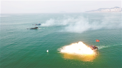 圖①:海上戰(zhàn)斗射擊。圖②:對海上目標射擊。唐瑞杰 攝