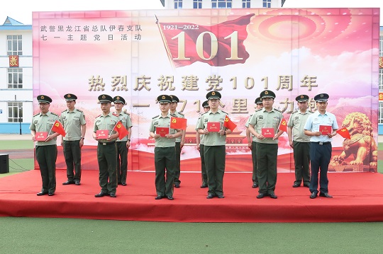 圖為該支隊全體黨員重溫入黨誓詞。