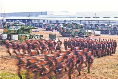 陸軍炮兵防空兵學(xué)院鄭州校區(qū)某學(xué)員大隊(duì)參加演練。鄒德勇 攝
