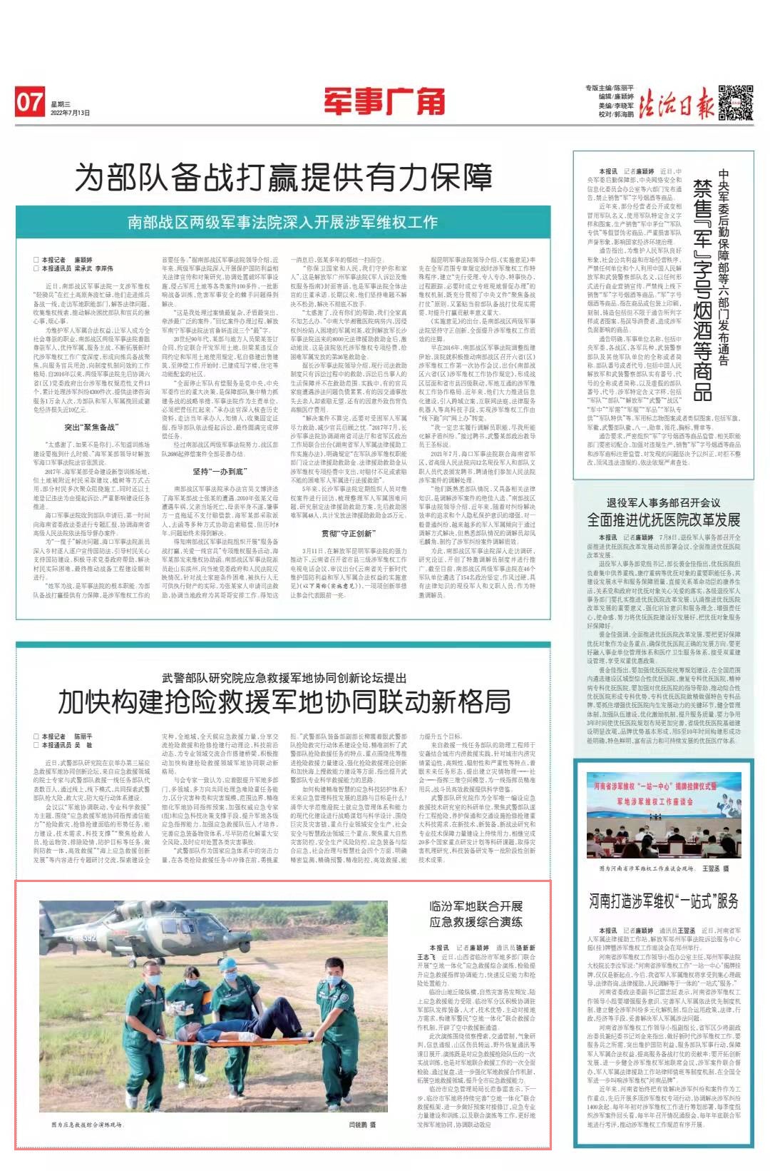 本報訊 記者廉穎婷 通訊員駱新新 王志飛 近日,山西省臨汾市軍地多部門聯(lián)合開展“空地一體化”應(yīng)急救援綜合演練,檢驗(yàn)提升應(yīng)急救援指揮協(xié)調(diào)能力、快速反應(yīng)能力和搶險處置能力。