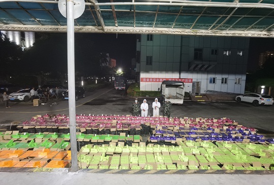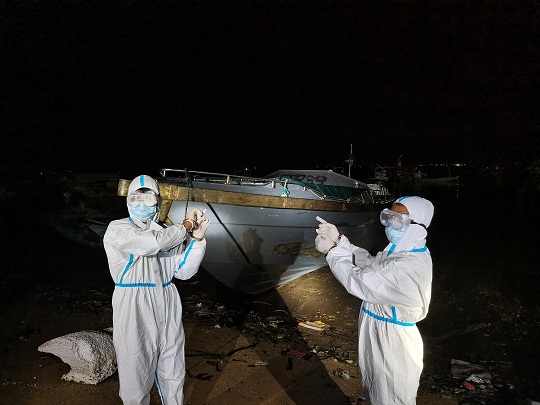 針對臺風“暹芭”剛過境,走私分子可能會心存僥幸利用較低潮位從事走私活動的現(xiàn)實情況,該局科學(xué)研判,嚴密部署執(zhí)法力量加強轄區(qū)管控。7月6日晚23時許,在轄區(qū)海域蹲守的海警執(zhí)法員發(fā)現(xiàn)有不明“大飛”蹤跡,經(jīng)過圍追堵截最終將涉嫌走私“大飛”一舉抓獲,現(xiàn)場抓獲涉案嫌疑人兩名,查獲涉嫌走私香煙一批,該船后置5臺“雅馬哈”機頭,總馬力超1000匹。經(jīng)合浦縣疾控中心對上述涉案物品及人員進行消殺、核酸檢測,結(jié)果均為陰性。經(jīng)清點,查獲美國“百樂”牌香煙約400件,共計1.9萬余條,總案值約500萬元。目前,該案件正在進一步深挖擴線中。