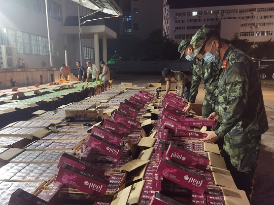 圖為清點涉案香煙。