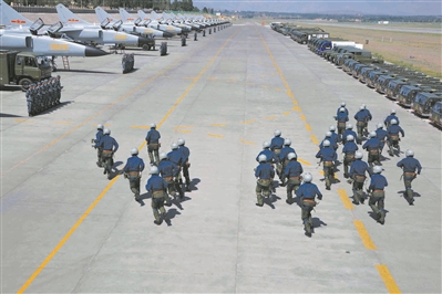 圖為空軍航空兵某旅官兵奔向戰(zhàn)位。王建朝 攝