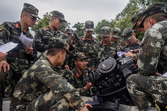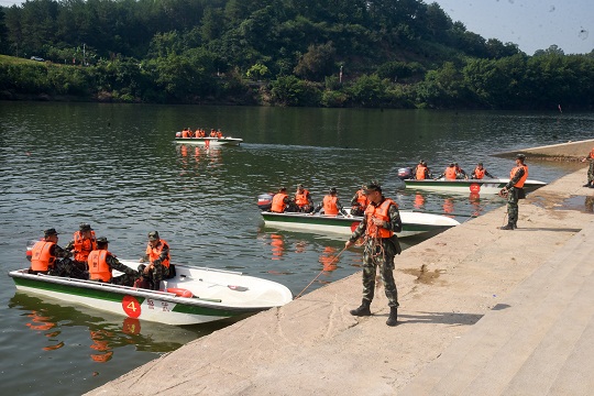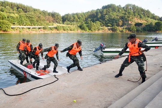針對駐地雨季歷時較長、降雨量偏多,可能出現持續(xù)性暴雨過程,防汛形勢較為嚴峻的情況,此次集訓把環(huán)境設險,把情況設全,把練技術、練心理與練作風結合起來,按照理論講解與實際操作相結合、考核評比與綜合訓練相結合的方法,對沖鋒舟機械理論、舷外機的安裝與啟動、故障排除、船艇直行、S型航行、水上營救等內容進行強化訓練。