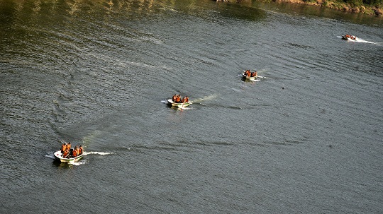 實訓中,參訓隊員5人一組,每名隊員輪流操作,按照啟動離岸、水上航行、靠岸熄火三個環(huán)節(jié),進行沖鋒舟實際駕駛訓練,同時開展隊形變換、定點???、水上救援等訓練,同時,他們針對往年救災時遇到發(fā)動機突然熄火、沖鋒舟被急流沖走以及水上雜物較多等情況,組織舟艇操作手在險灘、急流、逆流等環(huán)境里進行航行、解救落水群眾、轉移物資和被困群眾以及自救互救等技能訓練,并增加舟艇維修技能培訓,重點突出螺旋槳被硬物撞壞、船身被撞破、發(fā)動機無法啟動等問題的維修技能訓練,不斷提升實戰(zhàn)需要的本領。