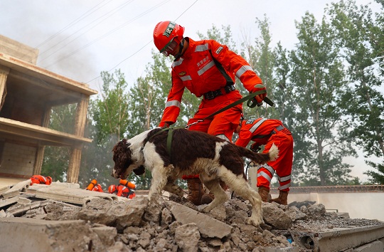 圖為官兵進行搶險救援訓練。