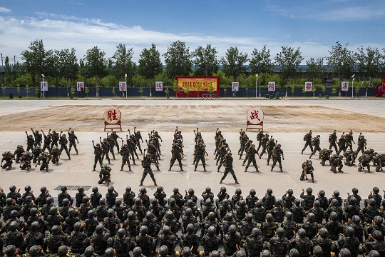京郊,驕陽似火?!?名‘不法分子’向某高地逃竄,現(xiàn)命令你部迅速處置?!敝笓]員一聲令下,無人機即刻升空,精準鎖定目標,戰(zhàn)斗小組交替掩護逼近。“突擊!”隨著一陣槍響,“不法分子”應聲而倒。