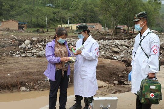 其余官兵在村子里幫助清理民房,安撫群眾,對不穩(wěn)固的圍墻、樹木等進(jìn)行加固或拆除,防止發(fā)生危險。幾名軍醫(yī)和衛(wèi)生員挨家挨戶為村民檢查身體并送去藥品,一位村民緊緊握著軍醫(yī)相美娟的手,哽咽著說:“我們沒有遇到過這樣的事,幸虧有武警官兵幫助,真不知道怎么感謝親人!”