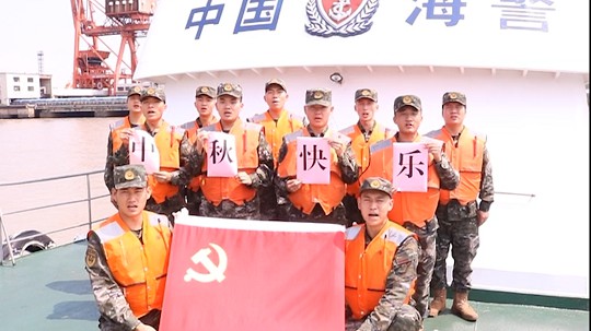 “海上生明月,天涯共此時。我們在上海海警局蘆潮工作站祝全國人民中秋節(jié)快樂,值此花好月圓的時刻,我們一定不辱使命,堅決守衛(wèi)好祖國的萬里海疆?!?/p>