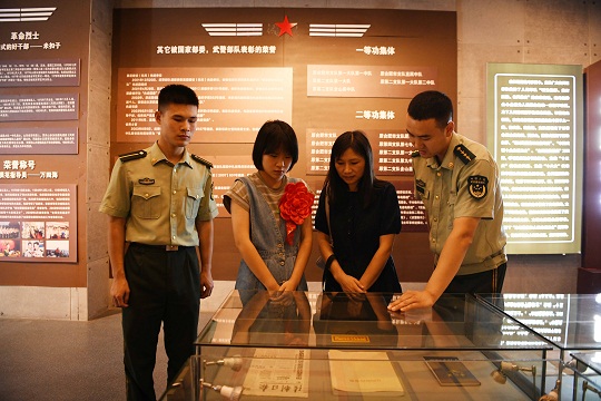 圖為在武警合肥支隊史館,萬鴻玥在學習父親萬四海生前事跡。