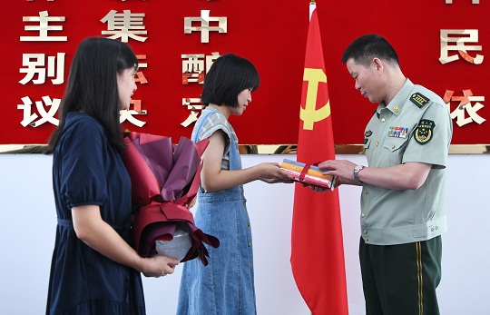 “鴻玥,祝你在軍校這個新的舞臺上鍛煉成才……”9月7日,在武警安徽總隊合肥支隊會議室,支隊政委張雁飛向即將前往武警工程大學報到的萬鴻玥表達了美好祝福。