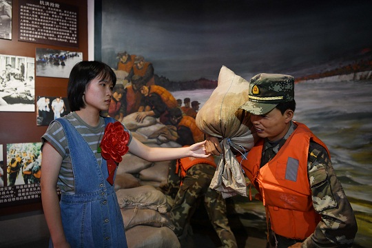 “這座群雕再現(xiàn)了萬四海同志帶領官兵激戰(zhàn)洪魔的場景……”在支隊史館,講解員向萬鴻玥和她母親介紹展陳內(nèi)容,“不論是過去還是現(xiàn)在、將來,萬四海同志都是我們學習的榜樣,激勵著支隊全體官兵踔厲奮發(fā)?!?/p>