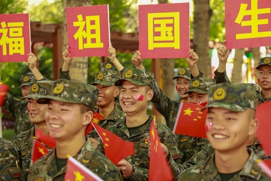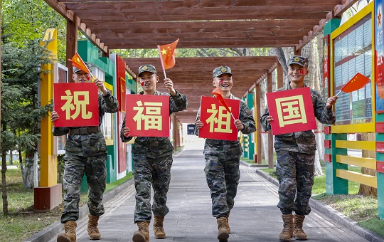 國慶前夕,武警青??傟犻_展“向祖國深情告白”主題活動,官兵們通過與國旗合影、組織升旗儀式等形式,向偉大祖國深情告白,祝福偉大祖國繁榮昌盛。圖為官兵揮舞國旗喜迎國慶。