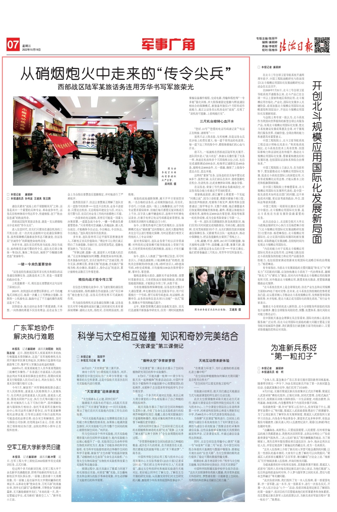 上線、敲鍵、聽音、接轉(zhuǎn),24小時(shí)不間斷值勤,每天接轉(zhuǎn)電話數(shù)千件;迎晨曦、送日暮,寒暑不辭,晨昏不輟,這便是話務(wù)女兵的日?!降致L。她們把青春融進(jìn)三尺機(jī)臺,用芳華書寫軍旅榮光。