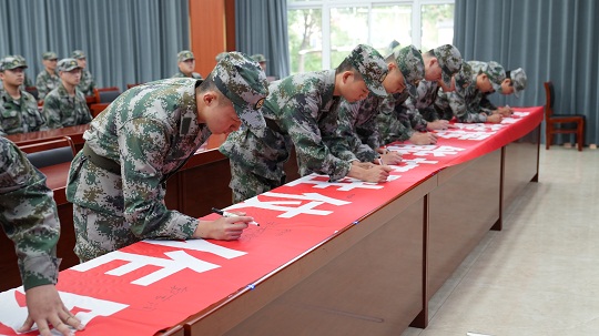 “此次役前訓練,我們組織了發(fā)一本入伍指南、看一部愛國電影、學一首軍歌、送一本書、發(fā)一張聯(lián)系卡、進行一次簽名儀式、開展一次入伍討論會‘七個一’活動。役前訓練是預定新兵了解部隊的第一扇窗戶,組訓目的不僅要提高他們的軍事素養(yǎng)和身體素質(zhì),而且要端正新兵參軍入伍的思想認識,為新兵系好軍旅歷程中‘第一??圩印??!标愑抡f。