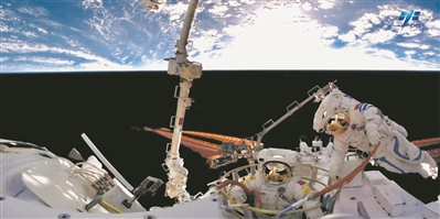 2022年9月17日,神舟十四號乘組航天員陳冬、蔡旭哲從問天實驗艙出艙,進行艙外作業(yè)。圖片來自中國載人航天官方微博