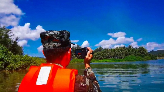 圖為海南海警局執(zhí)法員對(duì)無(wú)居民海島組織旅游活動(dòng)進(jìn)行拍照取證。吳昊 攝