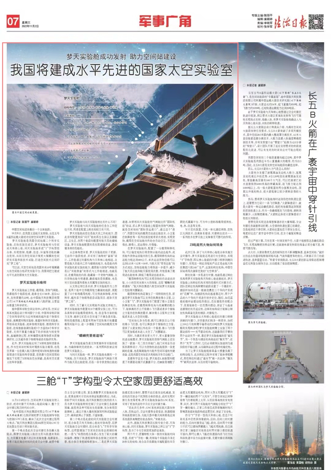 10月31日,在我國文昌航天發(fā)射場,長征五號B遙四運(yùn)載火箭成功發(fā)射空間站夢天實(shí)驗(yàn)艙。