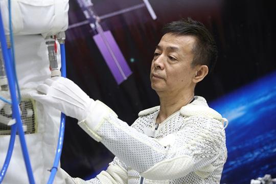 圖為鄧清明在艙外服訓(xùn)練中。