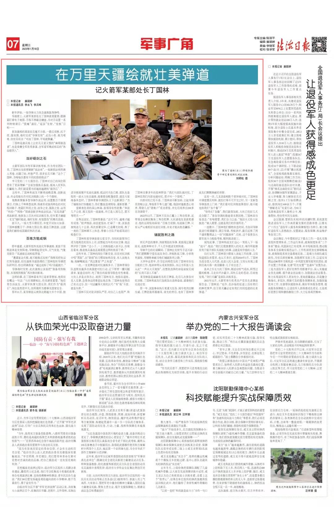 學(xué)習(xí)黨的二十大報(bào)告后,丁國林對(duì)自己的崗位職責(zé)有了更深理解:“全面加強(qiáng)練兵備戰(zhàn),提高人民軍隊(duì)打贏能力,我們就是要當(dāng)好越來越硬的‘礪劍石’?!?/p>