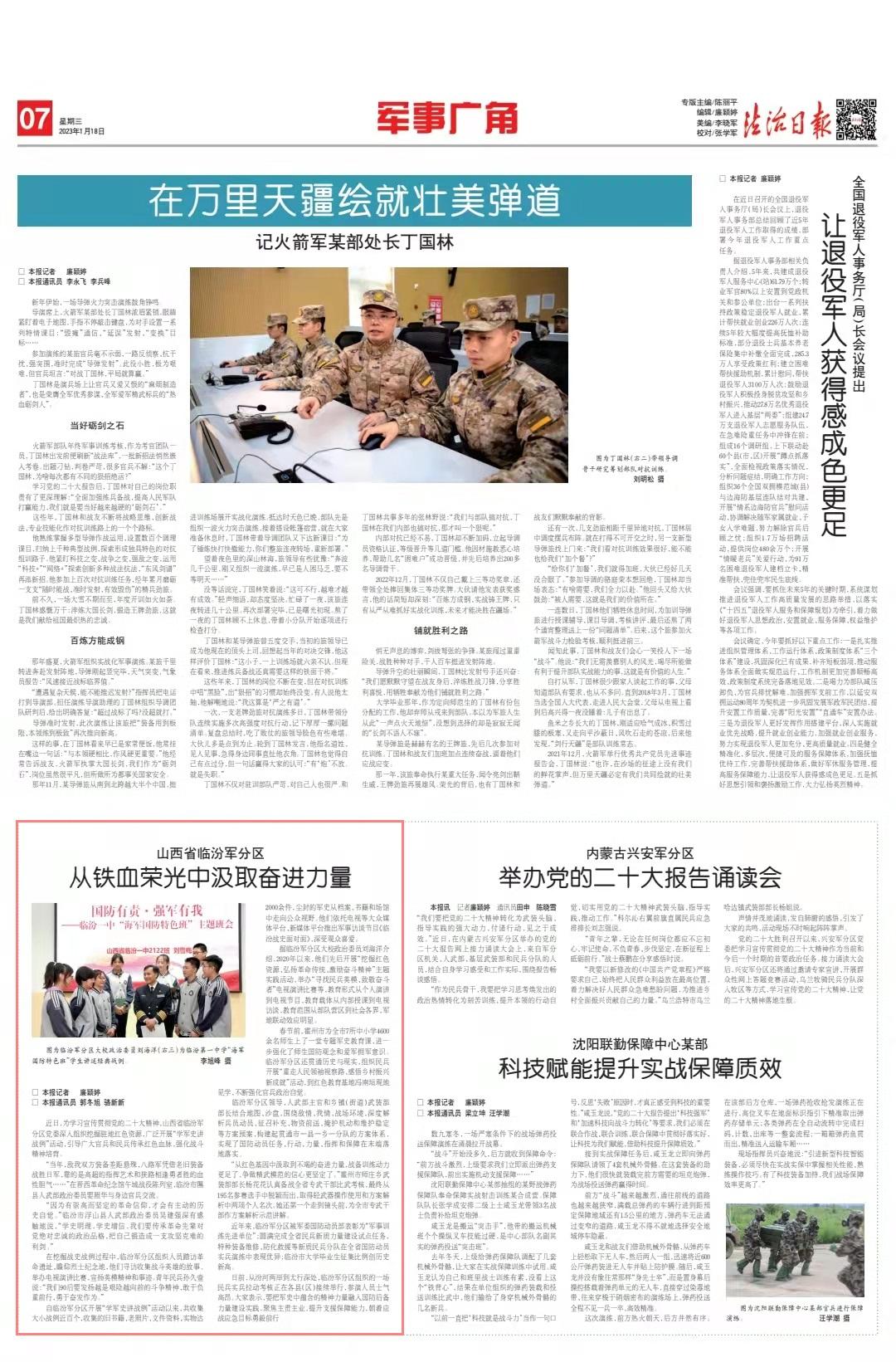 近日,為學(xué)習(xí)宣傳貫徹黨的二十大精神,山西省臨汾軍分區(qū)黨委深入組織挖掘駐地紅色資源,廣泛開(kāi)展“學(xué)軍史講戰(zhàn)例”活動(dòng),引導(dǎo)廣大官兵和民兵傳承紅色血脈,強(qiáng)化戰(zhàn)斗精神培育。