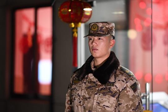 1月21日是農(nóng)歷除夕,武警江西總隊官兵堅守執(zhí)勤崗位,守護一方平安,確保群眾度過一個平安祥和的新春佳節(jié)。圖為除夕夜,武警江西總隊警衛(wèi)勤務(wù)大隊哨兵周鈺博在南昌市某軍營堅守執(zhí)勤哨位。本報通訊員 曹先訓 攝