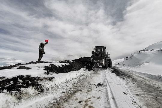 圖為武警第二機(jī)動總隊某支隊養(yǎng)護(hù)十七中隊官兵在海拔4658米的業(yè)拉山上執(zhí)行冬季清雪除冰任務(wù)。本報通訊員李貴華 攝