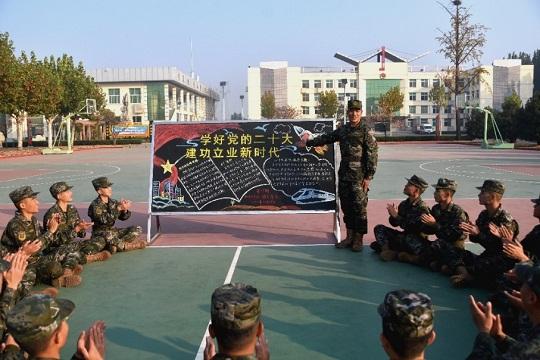 “黨的二十大報告強(qiáng)調(diào),全面加強(qiáng)練兵備戰(zhàn),提高人民軍隊打贏能力。作為一名基層官兵,我深感責(zé)任在肩?!苯?,在武警山東總隊臨沂支隊執(zhí)勤一大隊機(jī)動中隊訓(xùn)練場上,官兵們利用訓(xùn)練間隙學(xué)習(xí)黨的二十大精神。