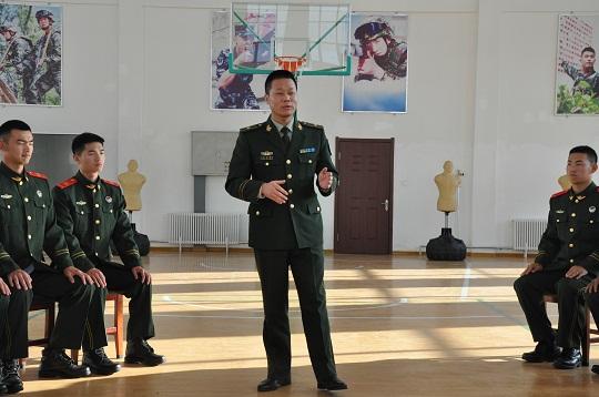 圖為武警部隊(duì)理論服務(wù)分隊(duì)成員、江蘇海警局執(zhí)法部偵察科科長(zhǎng)王志國(guó)為武警吉林總隊(duì)白山支隊(duì)官兵宣講理論知識(shí)。徐笠桓 攝