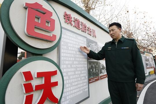 圖為武警山東總隊(duì)棗莊支隊(duì)組織紀(jì)檢股干事李命命學(xué)習(xí)支隊(duì)軍史長(zhǎng)廊陳展。曹正寶 攝