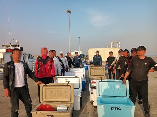 圖為抓獲的非法海釣人員。