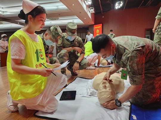 來自首都醫(yī)科大學(xué)附屬朝陽醫(yī)院、首都醫(yī)科大學(xué)附北京中醫(yī)醫(yī)院、首都醫(yī)科大學(xué)附潞河醫(yī)院、北京航天總醫(yī)院、銅川市人民醫(yī)院、解放軍空軍特色醫(yī)學(xué)中心和解放軍總醫(yī)院第六醫(yī)學(xué)中心的知名急救專家,以戰(zhàn)現(xiàn)場急救“早發(fā)現(xiàn)、早施救、早醫(yī)治”為重點,為基層骨干進行急救技術(shù)實用性培訓(xùn),內(nèi)容涉及圍心跳驟停救治、創(chuàng)傷的鏈?zhǔn)搅鞒虖?fù)蘇等,錘煉學(xué)員們過硬的急救技能和授課施訓(xùn)能力。