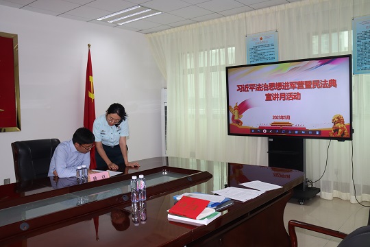 隨著第三個(gè)“民法典宣傳月”的到來(lái),為更好地幫助駐粵部隊(duì)官兵深入學(xué)習(xí)民法典,解放軍廣州軍事法院聯(lián)合廣東省司法廳,利用軍地優(yōu)質(zhì)法律資源,精心組織“習(xí)近平法治思想進(jìn)軍營(yíng)暨民法典宣傳月”活動(dòng)。