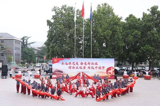活動在一個個紅色主題的文藝表演中拉開帷幕,黨員干部群眾再次重溫紅色經(jīng)典、緬懷革命先烈。在表演最后,表演者們再次走上舞臺,拼成“七一”兩個字的造型為黨獻禮,將活動推向高潮。