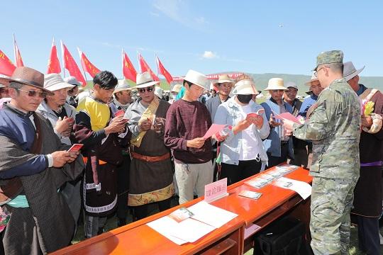 之后,官兵在現(xiàn)場開展了民族宗教政策宣講、醫(yī)療巡診、法律咨詢等活動,為農(nóng)牧民提供實(shí)用的綜合服務(wù)。部分官兵還和群眾圍坐在草地上,圍繞國防建設(shè)、增收致富、生態(tài)環(huán)保、雙擁共建等話題聊熱點(diǎn)、談心得、話感悟。“只要跟著黨和國家的好政策走,咱們的家園一定越來越美麗,咱們的日子一定越過越紅火?!蔽渚嗪?傟?duì)海北支隊(duì)政治委員葉華說。