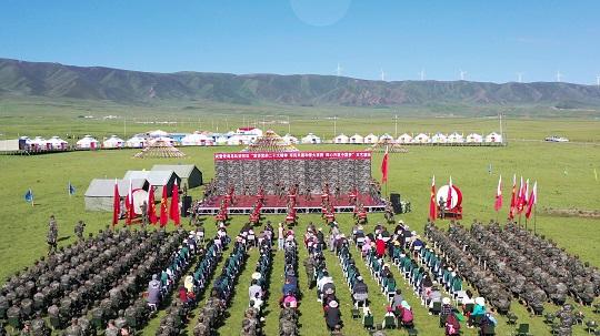 7月17日,在草原最美的季節(jié),武警青海總隊(duì)“宣講黨的二十大精神,軍民共建和諧大家園,同心共筑中國夢”文藝演出走進(jìn)青海省海北藏族自治州,當(dāng)?shù)啬撩袢罕姾筒糠竹v訓(xùn)官兵歡聚一堂。
