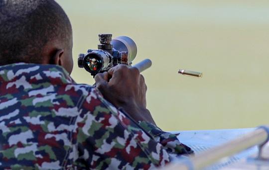 圖為參賽選手進行多種姿勢狙擊課目競賽。安曉惠 攝