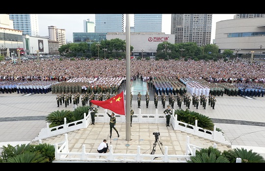 圖為8月1日上午,全軍院校“強(qiáng)軍杯”系列比賽集中交流賽560余名官兵與南昌市相關(guān)代表集合在南昌八一廣場參加升旗儀式。劉宇龍 攝
