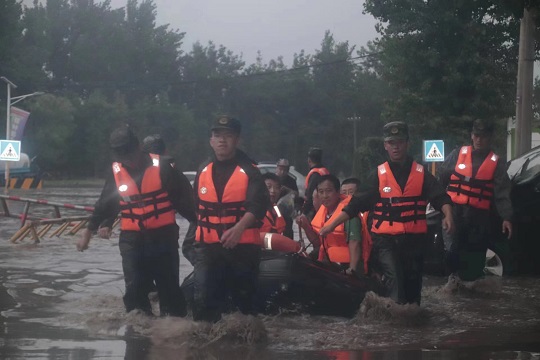 近日,受持續(xù)強(qiáng)降雨影響,北京市房山區(qū)石樓鎮(zhèn)夏村發(fā)生洪澇災(zāi)害,武警北京總隊(duì)機(jī)動(dòng)第二支隊(duì)官兵聞“汛”而動(dòng),星夜馳援,迅速前往一線抗洪搶險(xiǎn)救災(zāi),保證人民群眾生命財(cái)產(chǎn)安全,在抗洪救災(zāi)中度過(guò)了一個(gè)屬于他們的節(jié)日。他們利用沖鋒舟、皮劃艇等工具成功救助轉(zhuǎn)移三百余名群眾。