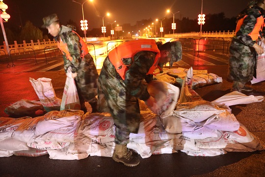 7月31日至8月2日,北京市懷柔區(qū)懷河水位持續(xù)高漲,接到上級(jí)命令后,中部戰(zhàn)區(qū)空軍地導(dǎo)某旅組織40余人防汛分隊(duì),赴懷柔區(qū)大杜兩河村大橋和廟城鎮(zhèn)進(jìn)行支援,開展防汛沙袋裝填、防汛墻構(gòu)筑等工作,險(xiǎn)情得到有效控制。目前,該部官兵仍然堅(jiān)守在一線,執(zhí)行警戒巡邏任務(wù)和橋梁管控任務(wù)。