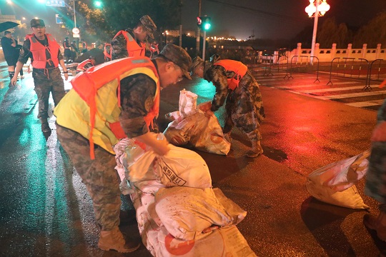7月31日至8月2日,北京市懷柔區(qū)懷河水位持續(xù)高漲,中部戰(zhàn)區(qū)空軍某部組織防汛分隊(duì),赴懷柔區(qū)大杜兩河村大橋和廟城鎮(zhèn)進(jìn)行支援,開展防汛沙袋裝填、防汛墻構(gòu)筑等工作,配合地方快速控制汛情蔓延。