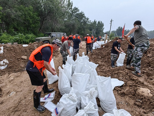 與此同時,武警黑龍江總隊哈爾濱支隊200余名官兵連夜奮戰(zhàn)9小時,在螞蟻河周邊壘筑沙袋2.8萬余個,筑起1.3米高阻隔沙墻600余延長米,保證了當地人民群眾生命財產安全。8月4日10時,全體參戰(zhàn)官兵轉戰(zhàn)螞蟻河西側綏滿公路一線,進行1000余米的加固堤壩任務,防止河水漫堤。