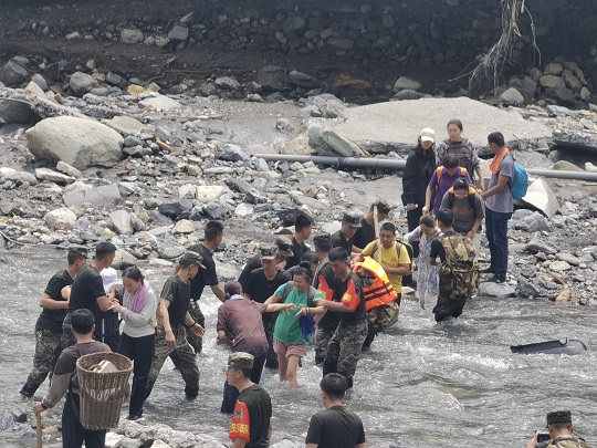 在河北省保定市淶水縣,持續(xù)暴雨導致駐馬河水位不斷上漲,三坡鎮(zhèn)百里峽景區(qū)村民出現物資匱乏現象,部分游客被困景區(qū)。中部戰(zhàn)區(qū)空軍地導某部18名黨員干部骨干主動請纓,駕駛7臺車輛赴災區(qū)協(xié)助輸送物資、轉移人員。