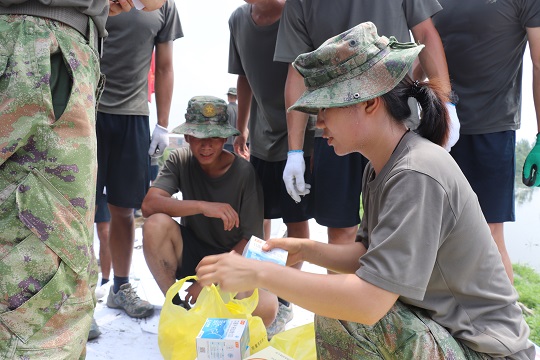 耿穎慧到達(dá)任務(wù)區(qū)后,第一時(shí)間投入工作??焖俅罱镁茸o(hù)所,歸納整理藥品,參加堤壩巡診……8月8日,迎戰(zhàn)洪峰前,她主動加入到堤壩加固任務(wù)中。裝沙、扎口、搬運(yùn)、筑壩……哪里需要哪里就有她的身影。汗水打濕衣襟,鍬鎬磨出血泡。休息調(diào)整期間,參加過維和任務(wù)的耿穎慧來到受災(zāi)群眾中,為大家巡診擦藥。