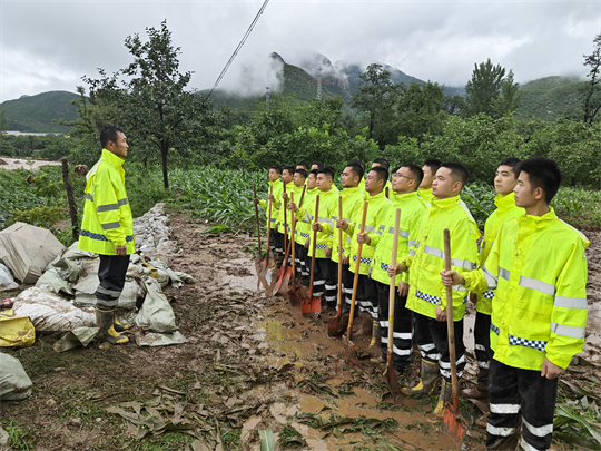 趙勇和戰(zhàn)友們立即投入救援,鏟淤泥、裝沙袋、固堤壩。經過持續(xù)奮戰(zhàn),官兵將防水布壓緊壓實,筑起一道擋水墻,成功排除險情。