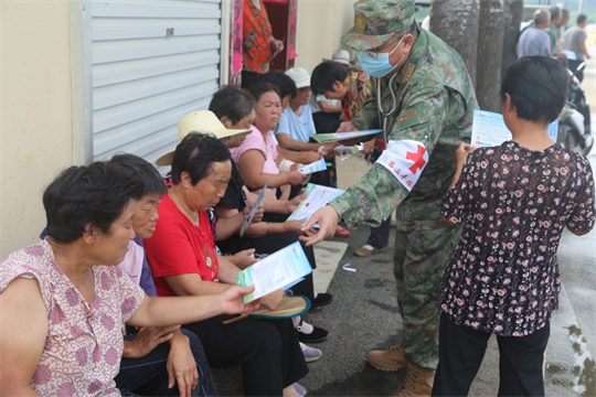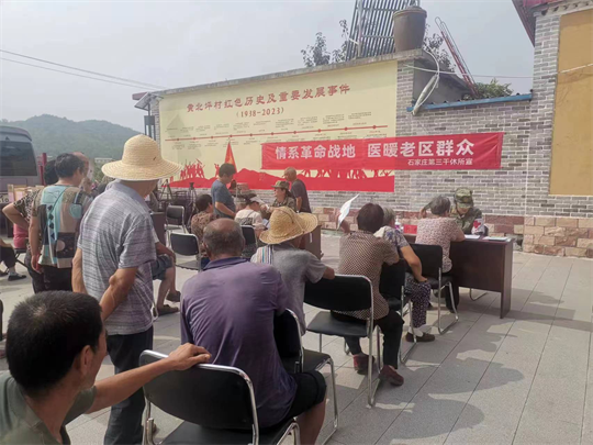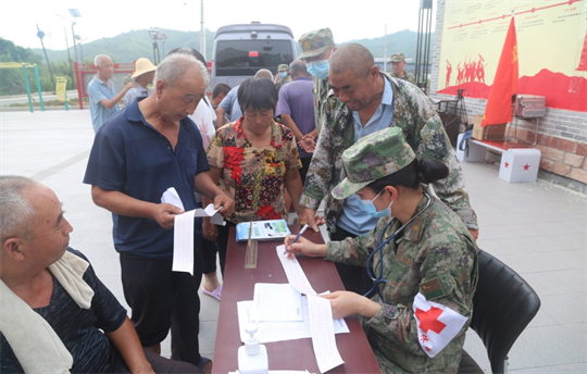 8月9日一早,河北省軍區(qū)石家莊第三干休所醫(yī)療服務(wù)隊攜帶血壓計、心電圖機(jī)、血糖檢測儀等醫(yī)療設(shè)備驅(qū)車一百多公里,來到太行山深處的革命老區(qū)——河北省贊皇縣黃北坪村,為剛剛受到暴雨山洪侵襲的村民進(jìn)行健康體檢、常見病篩查及災(zāi)后防疫宣講。