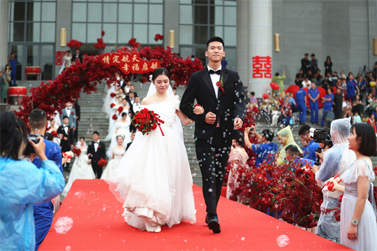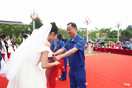 一項(xiàng)項(xiàng)儀式,將集體婚禮活動(dòng)引向高潮。此次參加集體婚禮的航天工作者大多來(lái)自一線崗位,他們常年執(zhí)行高密度航天發(fā)射任務(wù),缺少時(shí)間與愛(ài)人團(tuán)聚,有的婚期更是一再推遲。中心為一對(duì)對(duì)新人搭建起盛大的舞臺(tái),舉辦隆重的集體婚禮,讓祖國(guó)見證他們的幸福與榮光。