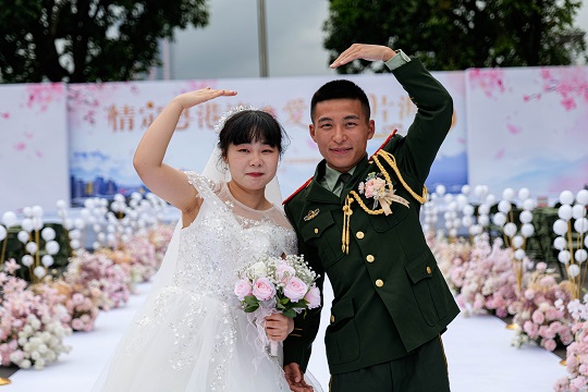 執(zhí)法員邱猛猛的愛(ài)人吳佳怡在致辭中說(shuō),這次集體婚禮將成為他們生命中最美好最深刻的記憶,同時(shí),她也將繼續(xù)激勵(lì)自己的愛(ài)人扎根海疆,為祖國(guó)作出更大的奉獻(xiàn)。話語(yǔ)樸實(shí)無(wú)華但擲地有聲,引起現(xiàn)場(chǎng)所有人共鳴。