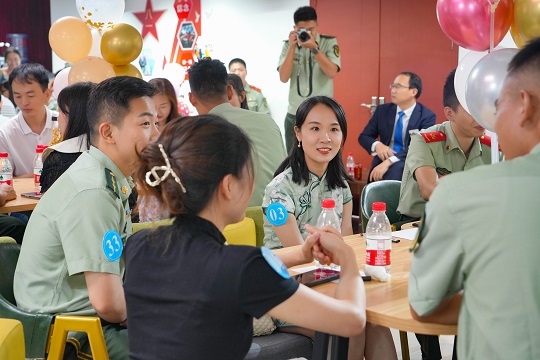 踩著音符,迎著微風(fēng),應(yīng)邀出席的女嘉賓走進(jìn)廣東海警局,在海天的見(jiàn)證下共赴一場(chǎng)浪漫的海疆之約。在“相約鵬城海疆·共敘幸福人生”交友聯(lián)誼會(huì)活動(dòng)現(xiàn)場(chǎng),男女嘉賓領(lǐng)取屬于自己的“緣分號(hào)碼牌”,圍坐交流。廣東海警局執(zhí)法員馬運(yùn)澤來(lái)到女嘉賓的座位旁,大方介紹自己,女嘉賓也積極回應(yīng)。經(jīng)過(guò)一番交流,雙方互有好感,一同拍下合影。